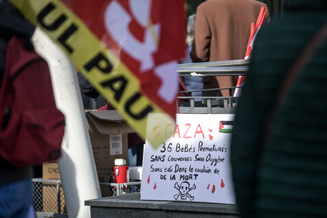 La manifestation était organisée par l?ensemble des formations politiques et syndicales de gauche.(AFPS, CGT, Ensemble!, 64 Béarn, EELV)Près de 250 personnes ont défilé en soutien à la Palestine ce samedi 18 novembre au matin, en centre-ville de Pau, comme la semaine passée et celle d?avant.