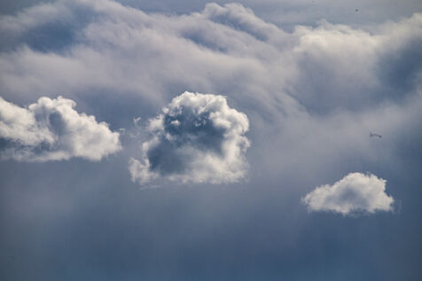 Clouds in the sky over Pau, Pyrénées Atlantiques. Threatening skies, black clouds and white clouds. The greyness of a leaden sky. Cumulus, stratus and cirrus clouds. The rain is coming and the sun is hiding. A dreamlike landscape that inspires reverie. In the skies, dreams are not far away. Imagination and reality at the service of the sweetness of life. Fullness is never far away in the blue clouds. Olympus, the land of the gods sitting on soft cumulonimbus clouds. A sky of rage or a sky of storm. The evanescence of the spirit. Spirituality for comfort. Changing your mind and believing in your dreams. Distance is relativity. Pollution of the air and atmosphere is due to the release of CO2 and causes breathing problems.