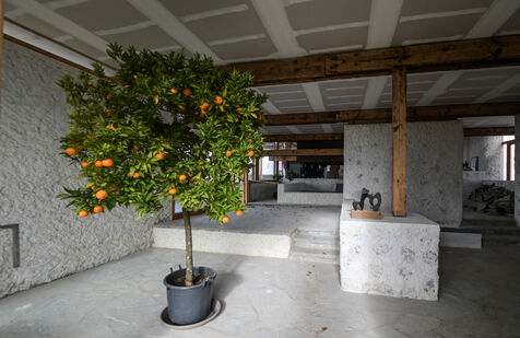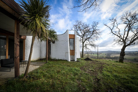 France, Lanneplàa, 2022-02-05. La Maison Cazenave, créée par l?architecte Hans Demarmels, trône sur les hauteurs du village de Lanneplaà, près d?Orthez. Les nouveaux propriétaires lui rendent son aspect originel.