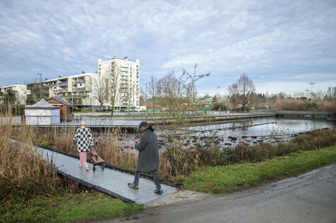 In the sensitive Ousse des Bois district of Pau, an artificial lake has been installed at the foot of the blocks of flats and council housing. After 10 years, it is being drained to inspect the waterproof membrane. The Hameau lake covers an area of 8,500m2. It has the advantage of bringing a touch of nature, greenery and serenity to an area of the city that is covered in concrete.