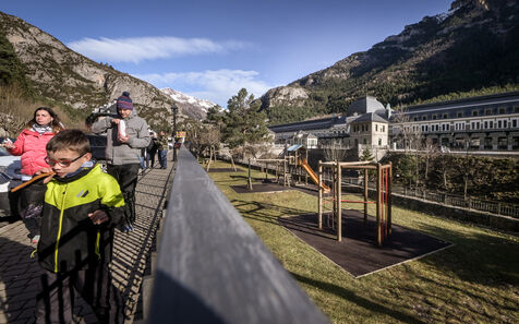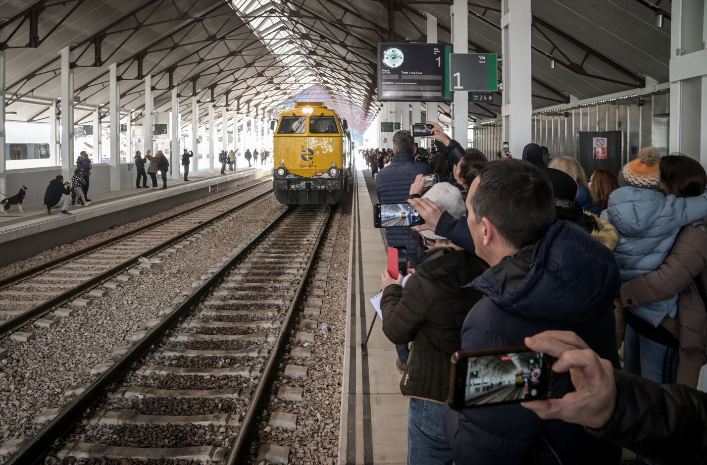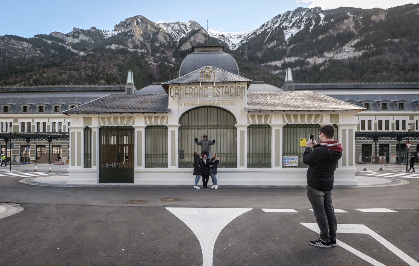 Le « Train blanc » à destination de la gare de Canfranc transporte 400 passagers. Ce convoi de neuf voitures historiques, au départ de Madrid, est un symbole pour la ville de Canfranc qui veut se forger un nouveau destin ferroviaire.