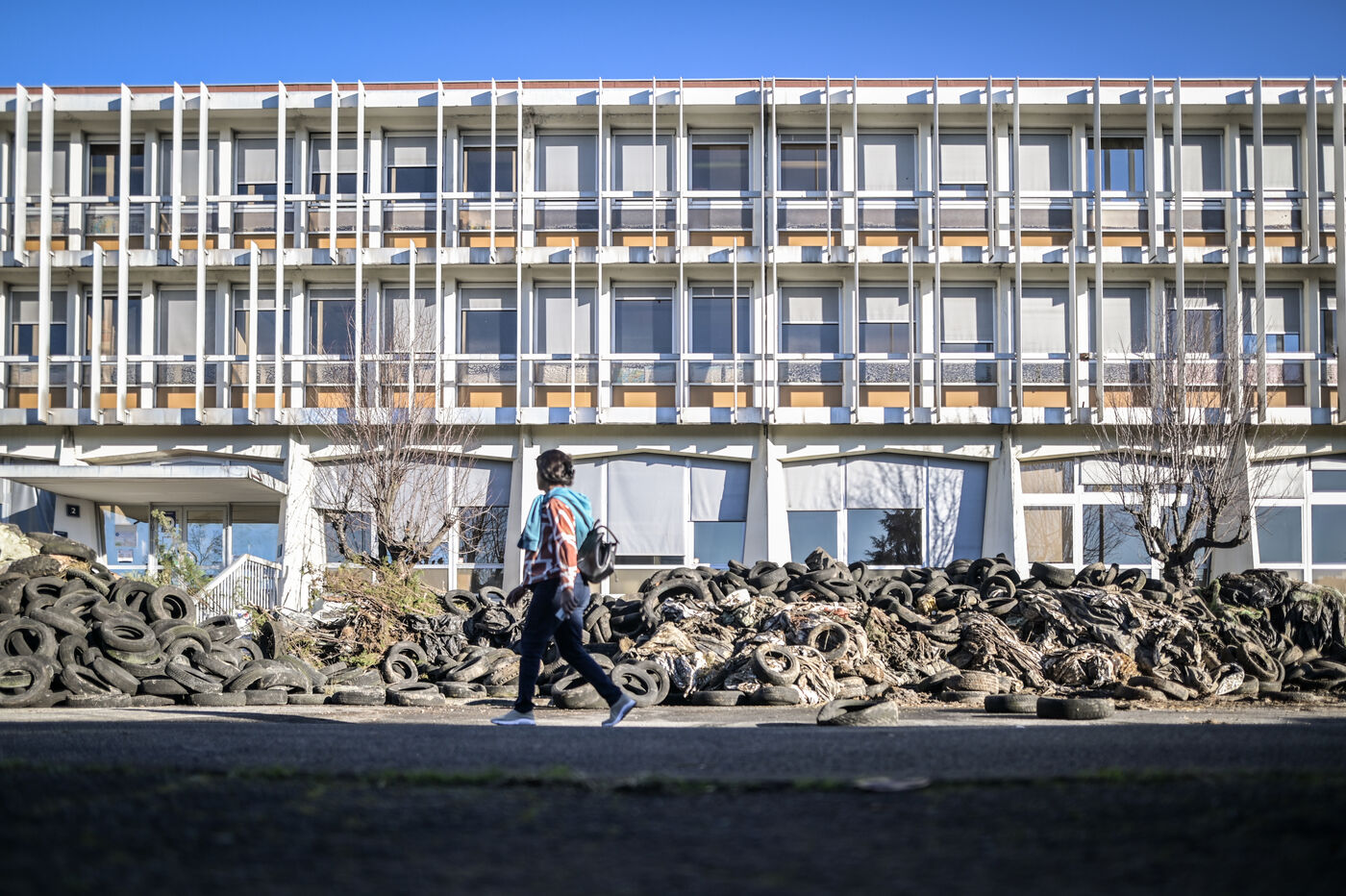 Dans la nuit de mercredi 24 à jeudi 25 janvier, environs 80 tracteurs ont manifesté et ont déversé des pneus, déchets végétaux et purin devant les locaux de la Direction départementale des Territoires et de la Mer. Cette action a été menée dans le cadre du mouvement national auquel prennent part nombre d'agriculteurs. Des passants observent les dégâts. Un nettoyage de grande ampleur sera nécessaire.