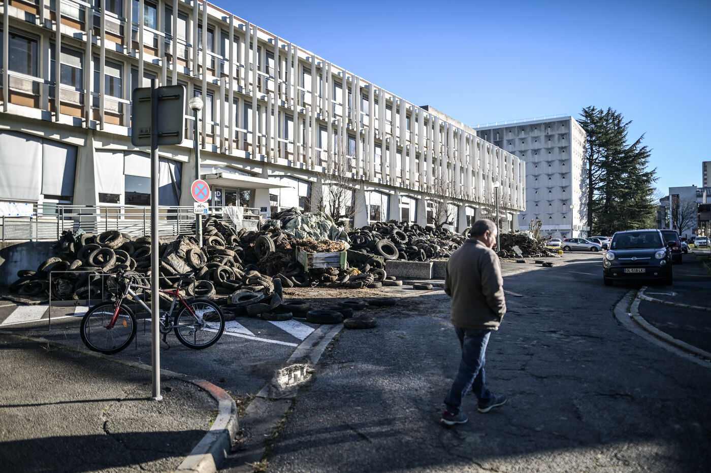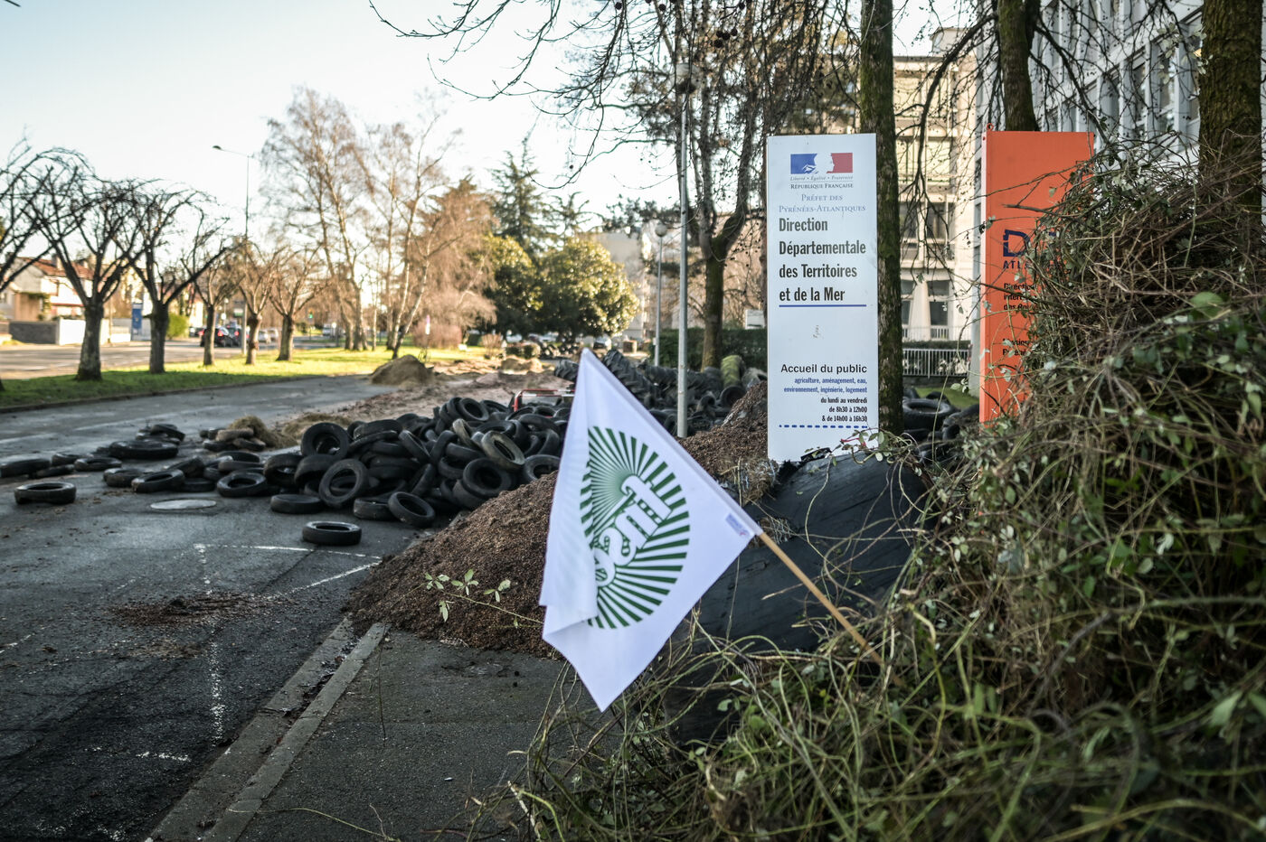 On the night of Wednesday 24 to Thursday 25 January, around 80 tractors demonstrated and dumped tyres, plant waste and liquid manure in front of the offices of the Direction départementale des Territoires et de la Mer. The action was part of a national movement in which many farmers are taking part.