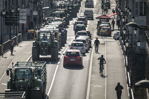 In Pau, on Saturday January 27, 2024, breeders from the Association des éleveurs et transhumants des vallées béarnaises (AETVB) led a snail march with the support of thirty tractors behind a banner reading "L'écologisme tue le pastoralisme" ("Environmentalism kills pastoralism"). They then joined the FDSEA farmers blocking the A64 access roundabout.