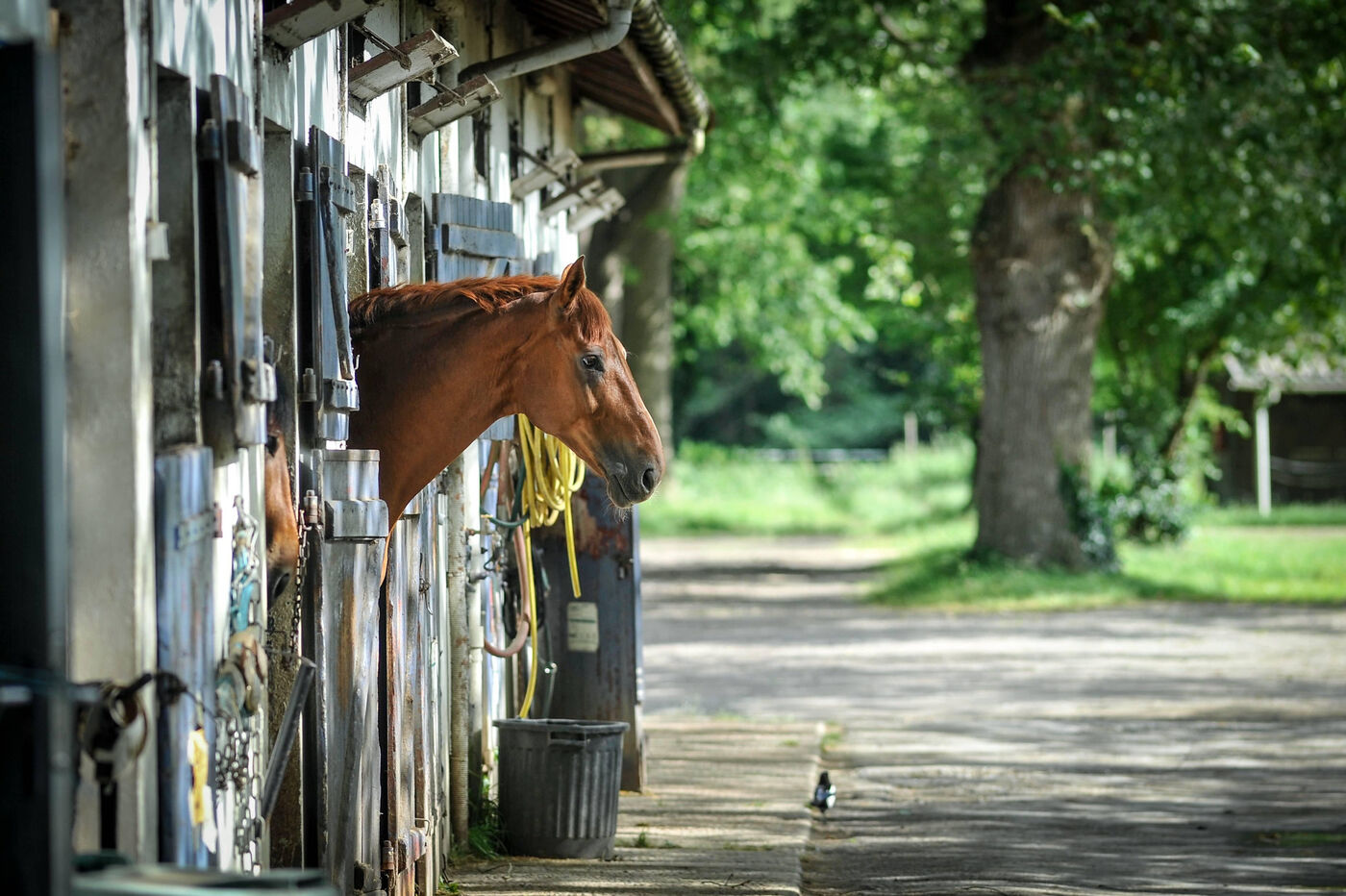 Images d'illustration d'un centre équestre du Béarn. Dans l'écurie les chevaux ont chacun leur box et sont gérés par les palefreniers ou les soigneurs équins.