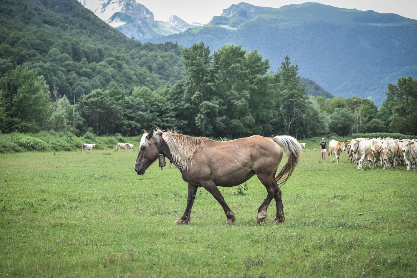 In the Atlantic Pyrenees in the Ossau valley, the marking of herds (horses, ewes, cows) for transhumance to the summer pastures.