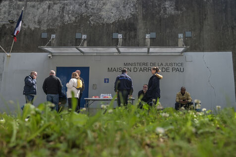 In the wake of the bloody ambush of a penitentiary van at the Incarville toll plaza in the Eure region, numerous mobilizations were organized this Wednesday morning in front of prisons across France. Prison officers at Pau observed a minute's silence inside the walls of the prison, before mobilizing outside the entrance for an impromptu lunch.