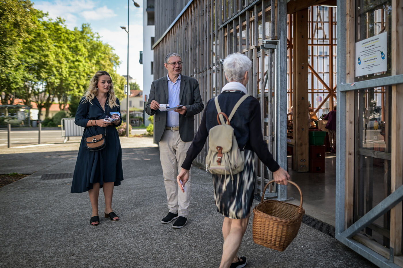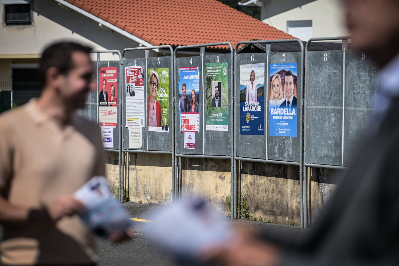 Between the 2 rounds of the 2024 legislative elections, François Verrière (RN) is campaigning in the town, which has a diverse left-wing majority. The "rassemblement national" candidate, who came out on top in the first constituency of the Pyrénées Atlantiques against the MODEM deputy Josy Poueyto, came to the small town's organic market with his team and activists to leaflet. They then went limping through the adjoining neighbourhood.