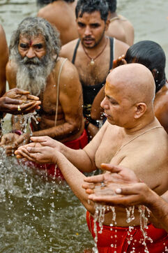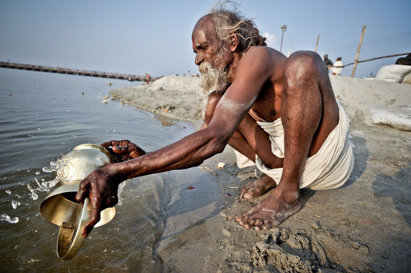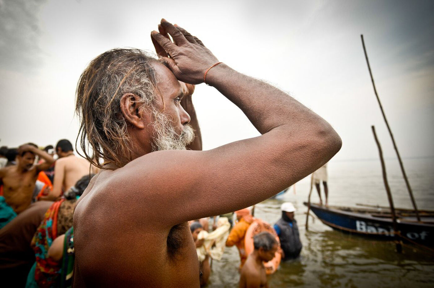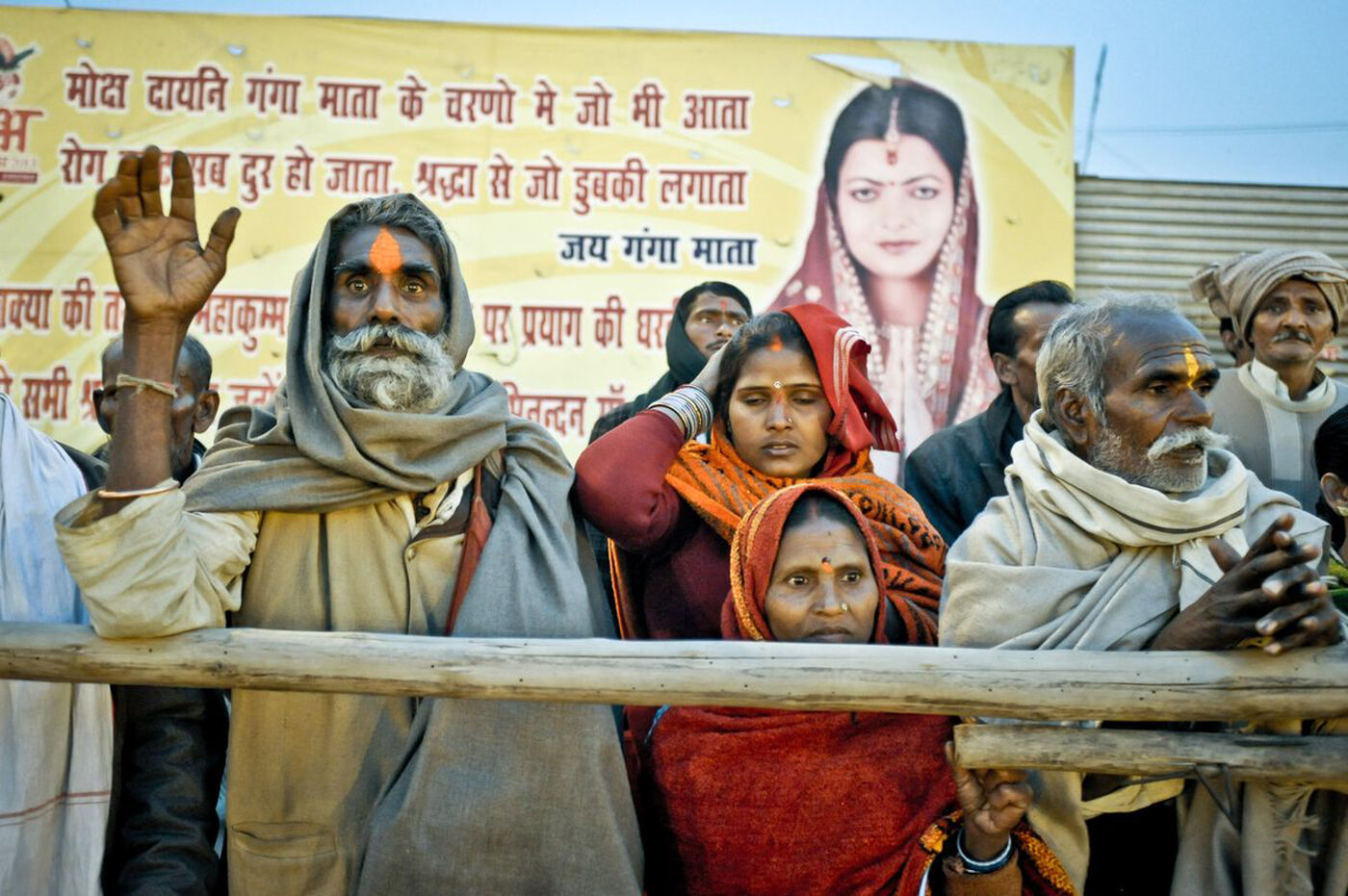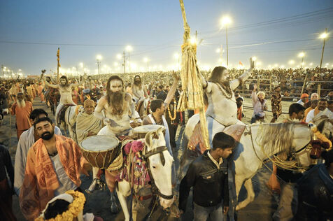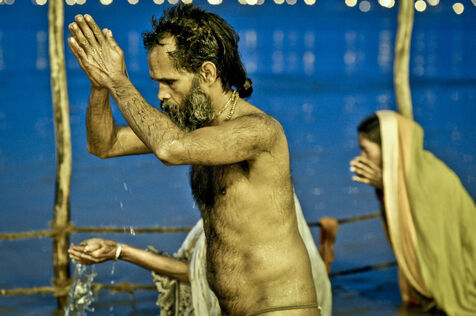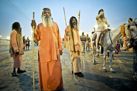 The Maha Kumbh Mela 2013, celebrated in Allahabad, is a unique convergence of millions of Hindu pilgrims who come to purify themselves in the sacred waters of the Triveni Sangam, the confluence of the Ganges, the Yamuna and the mythical Sarasvati. Emblematic scenes show Sadhus covered in ashes, symbolizing renunciation, leading ritual processions. The devotees, immersed in fervent prayers and offerings, illustrate the intense spirituality of this event. This gigantic gathering, marked by sacred baths, is a moment of devotion, faith and cultural exchange, bringing together all strata of Indian society.