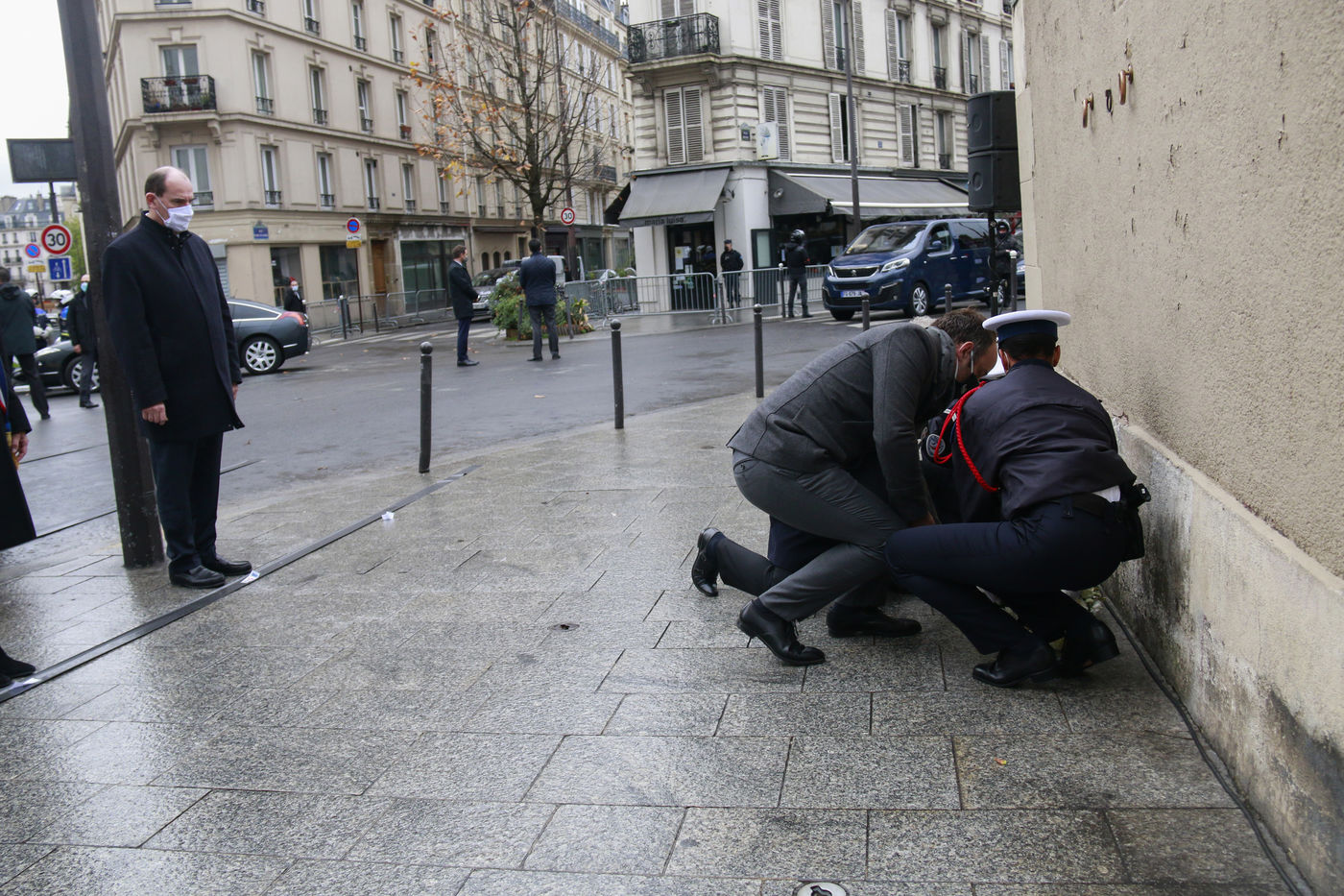 Recueillement de Jean Castex sur les sites des attentats de Paris