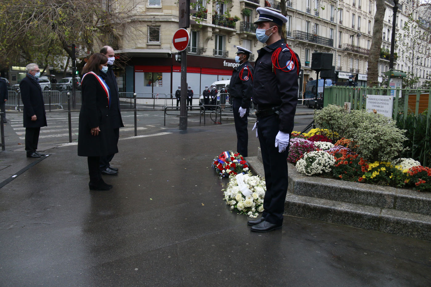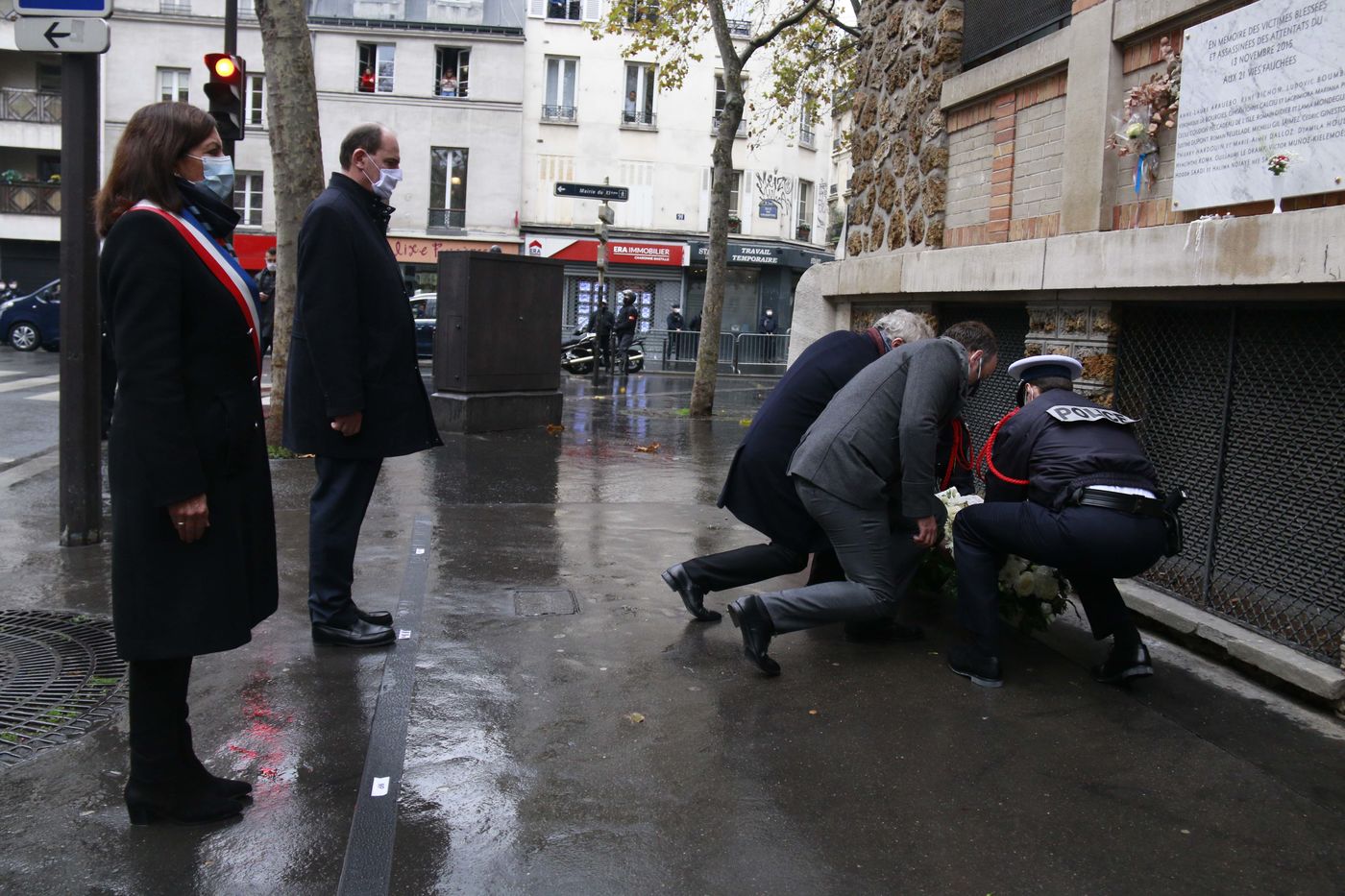 Jean Castex, accompagné d'Anne Hidalgo et aussi de Gerald Darmanin et Eric Dupond-Moretti était venu se recueillir devant le Stade de France, La Rue Bichat, le boulevard Voltaire et le Bataclan pour les cinq ans des attentats de Paris le 13 novembre 2020.