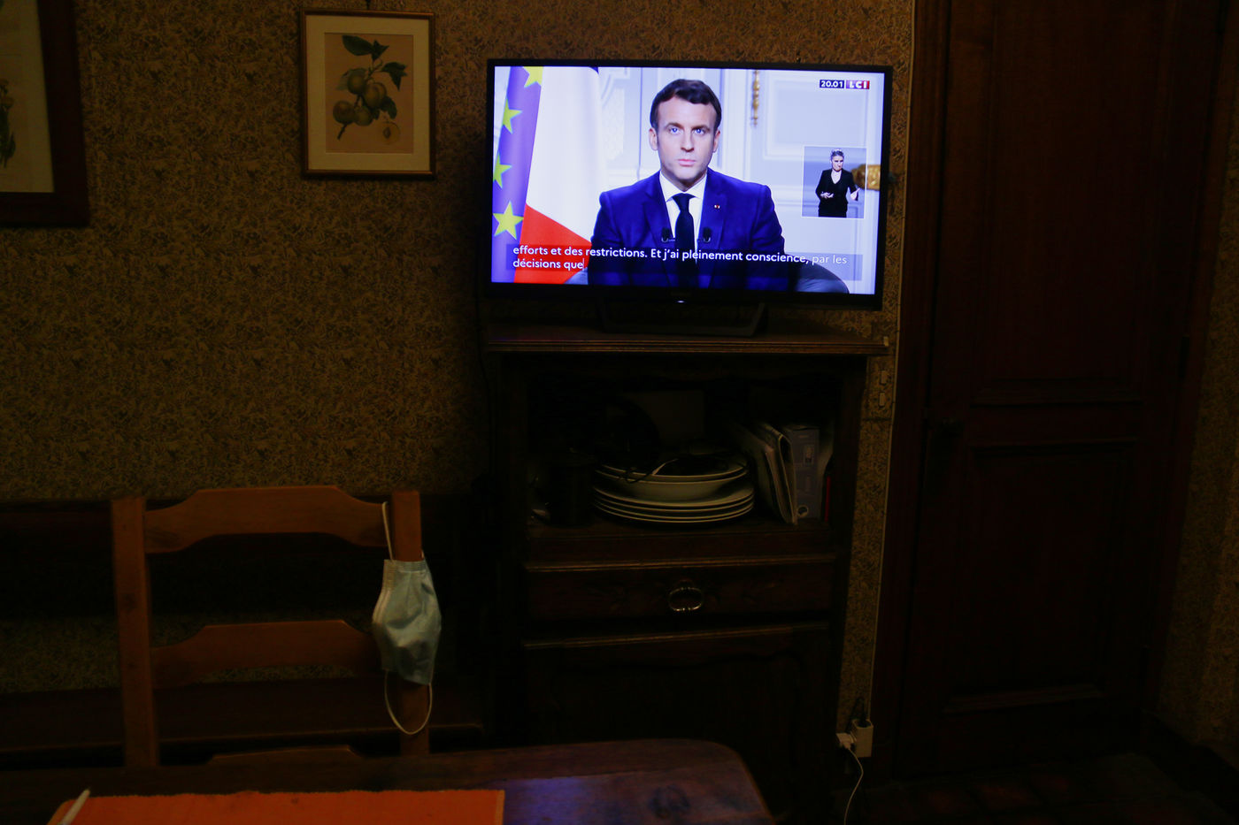 Voeux d'Emmanuel Macron le 31 décembre 2020, ce dernier rappelant la crise sanitaire dans le pays.