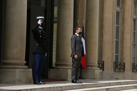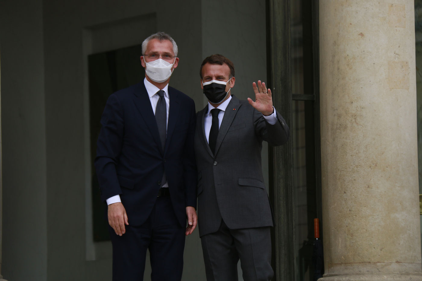 President Emmanuel Macron receives NATO Secretary General Jens Soltenberg at the Elysée Palace in preparation for the NATO summit which will take place in June.