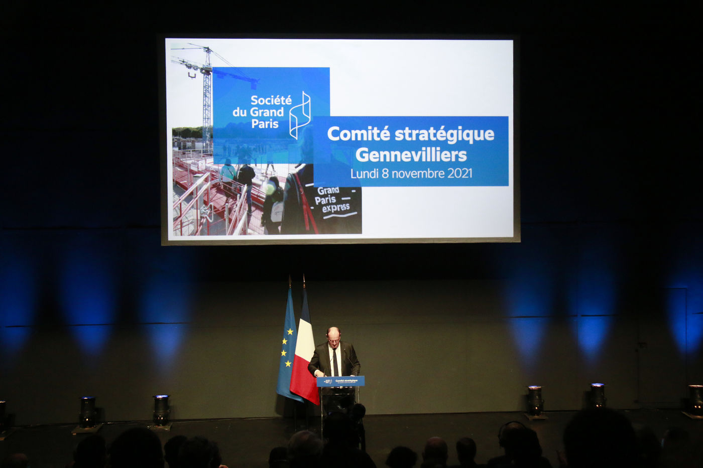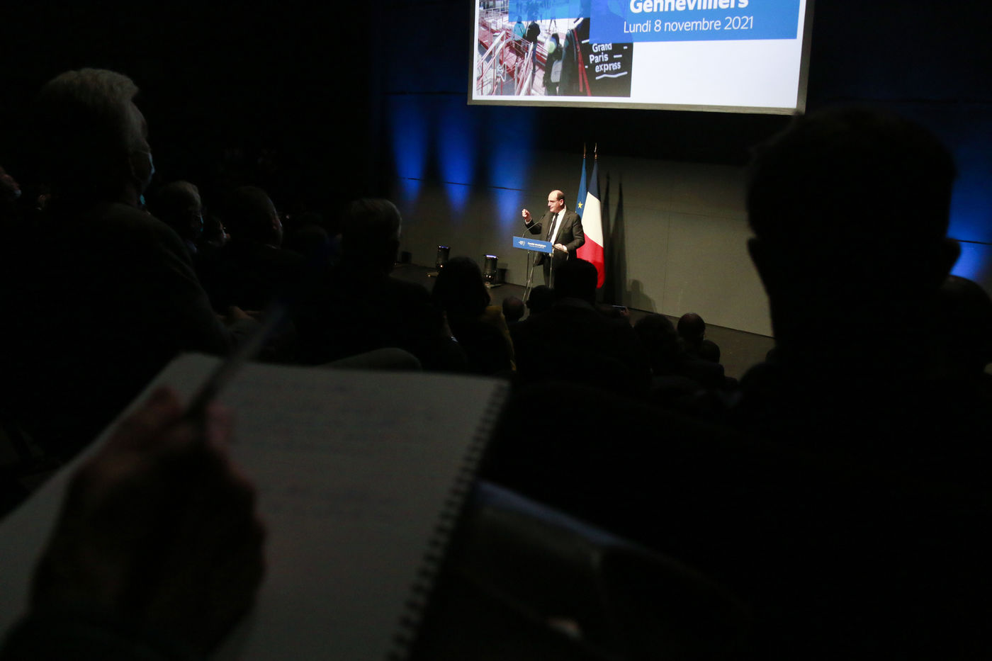Speech by Jean Castex at the Théâtre de Gennevilliers on the works of the Grand Paris Express on November 8, 2021.