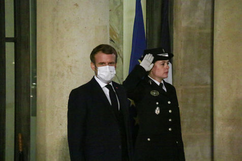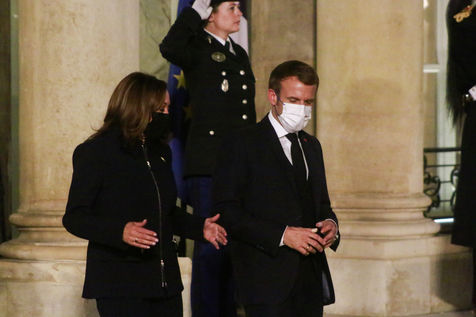 Reception of Kamala Harris by Emmanuel Macron in Elysee on November 10, 2021.