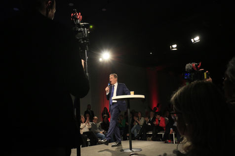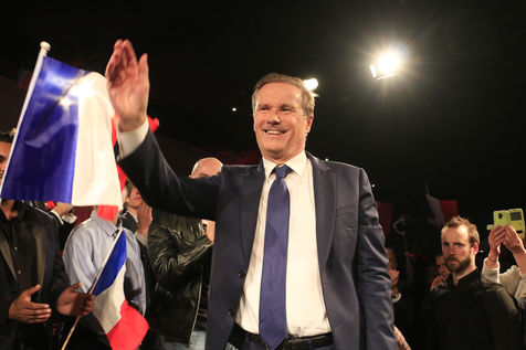 Candidate Nicolas Dupont-Aignan during his last meeting for the 2022 presidential elections.