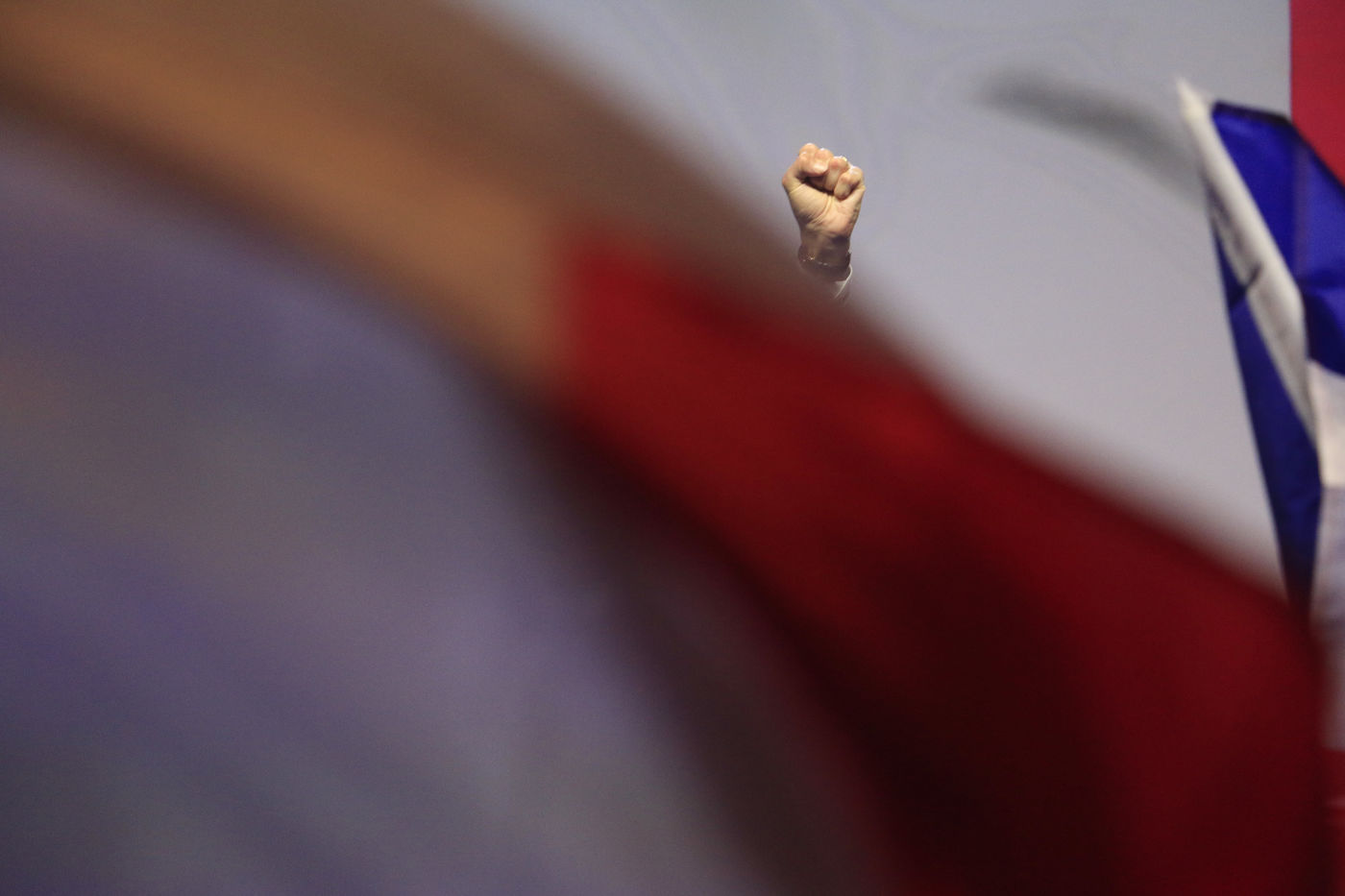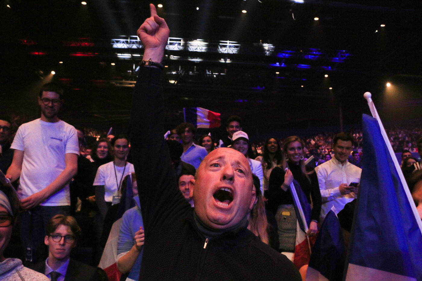 France, 2022-04-07. Le candidat du parti Reconquete Eric Zemmour lors de son dernier meeting de campagne avec le collectif Les Jeunes avec Zemmour au Palais des Sports. Photographie de Quentin de Groeve / Hans Lucas