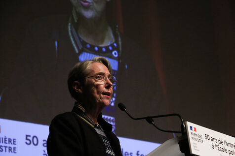 France, Paris, 2022-11-15. Prime Minister Elisabeth Borne during the 50th anniversary of the entry of women into the Ecole Polytechnique. Photograph by Quentin de Groeve / Hans Lucas