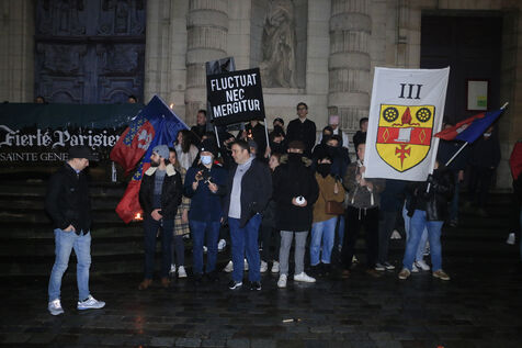 France, 2023-01-07. The march organized by Paris Fierte in tribute to Sainte-Genevieve finally took place even though it was initially banned. Photograph by Quentin de Groeve / Hans Lucas