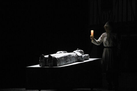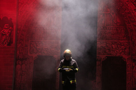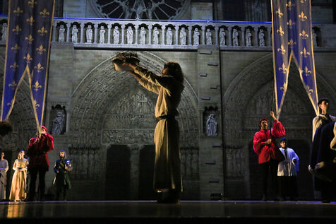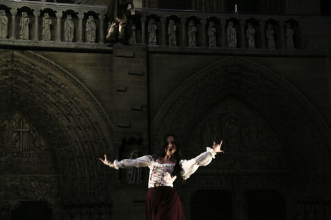 France, Paris, 2023-06-29. Preview of La Dame de Pierre, a show in homage to Notre-Dame de Paris, at the Palais des Congres. Photograph by Quentin de Groeve / Hans Lucas