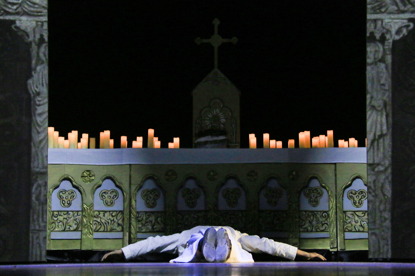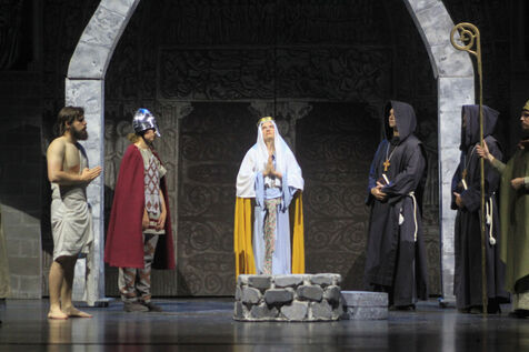 France, Paris, 2023-06-29. Avant-premiere de La Dame de Pierre, spectacle en hommage à Notre-Dame de Paris, au Palais des Congres. Photographie de Quentin de Groeve / Hans Lucas