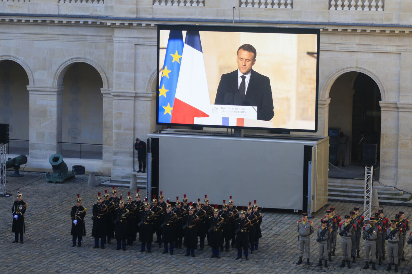 A national tribute chaired by Emmanuel Macron was paid to Jacques Delors at the Invalides on January 5, 2024.
