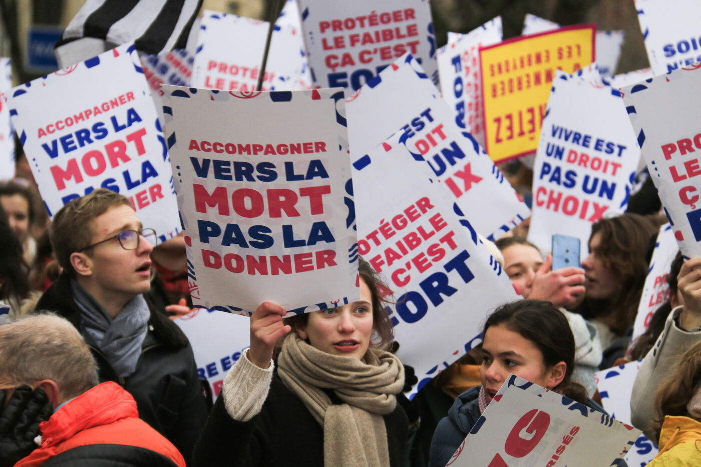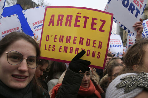France, Paris, 2024-01-21. Many people gathered during the March for Life against abortion and euthanasia. Photographie de Quentin de Groeve / Hans Lucas