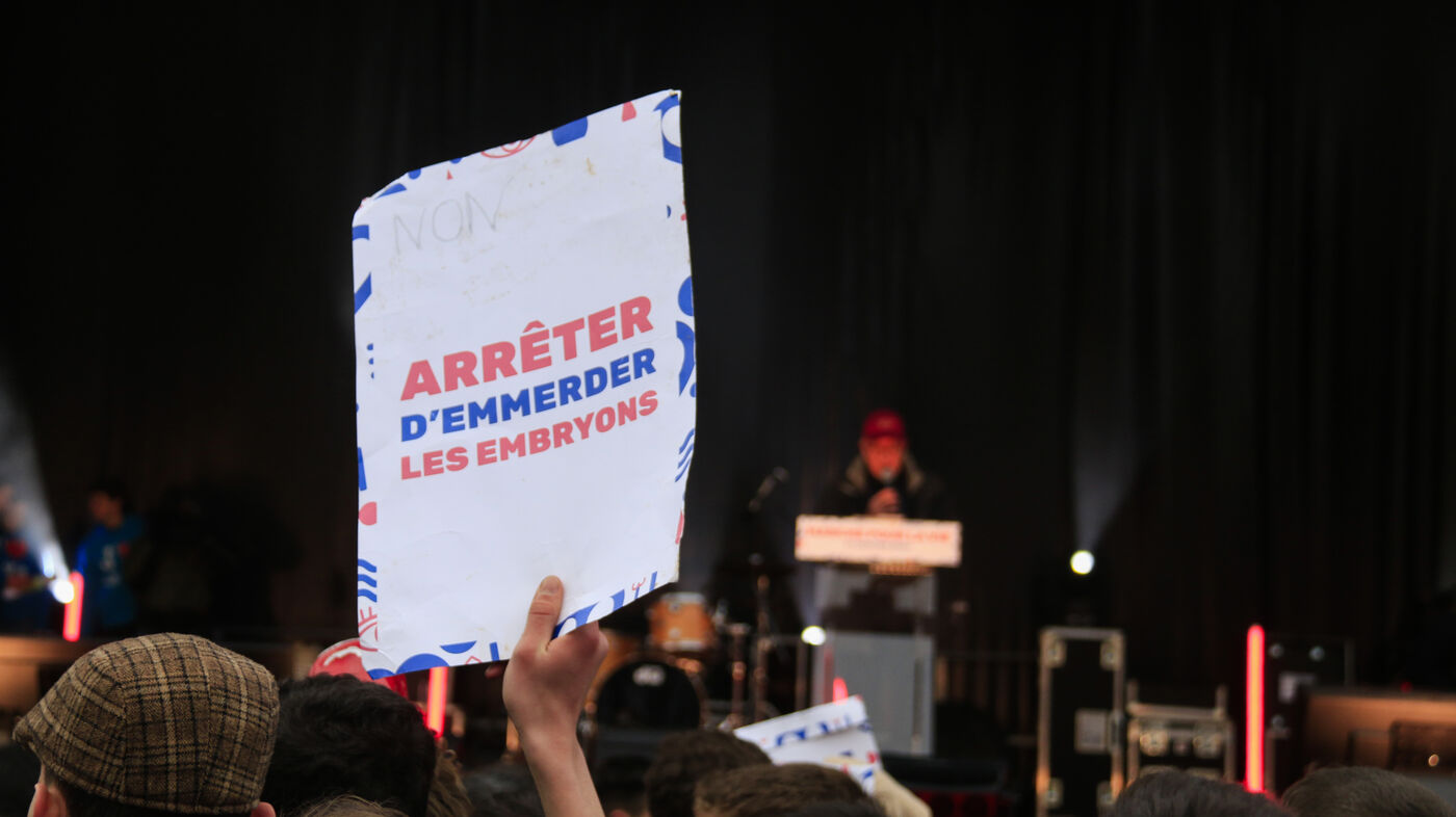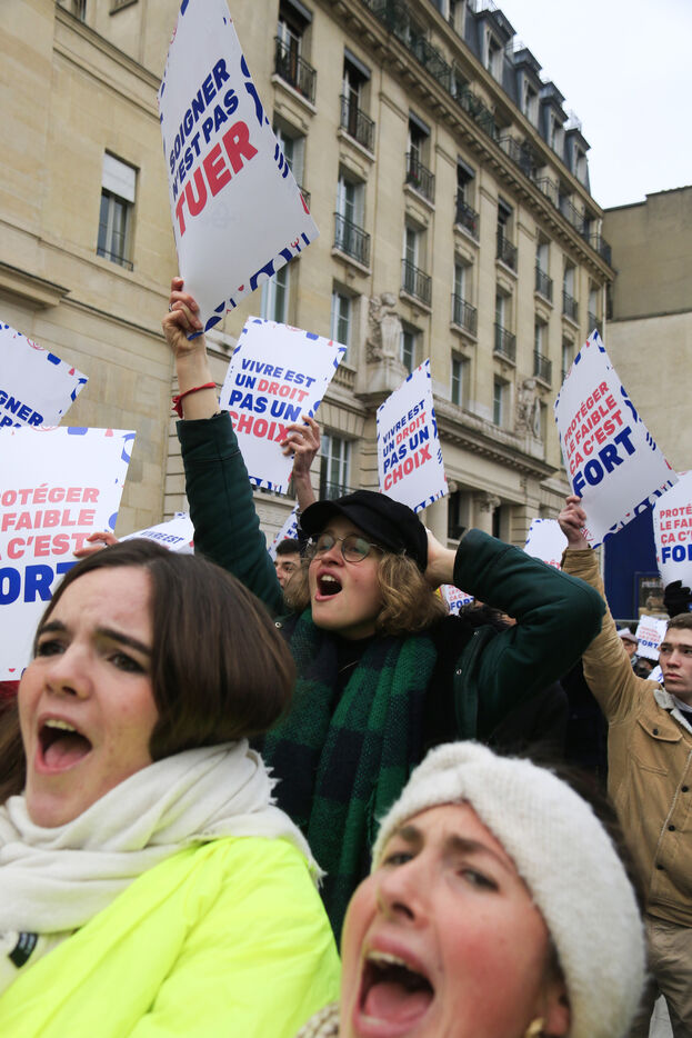 France, Paris, 2024-01-21. De nombreuses personnes se sont réunies lors de la Marche pour la Vie contre l'avortement (IVG) et l'euthanasie. Photographie de Quentin de Groeve / Hans Lucas