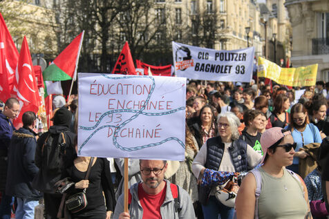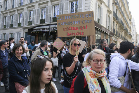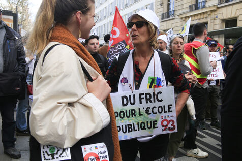 France, Paris, 2024-03-19. De nombreuses personnes ont manifesté dans le cadre de la grève des enseignants au sein de l'Education Nationale. Photographie de Quentin de Groeve / Hans Lucas