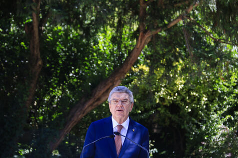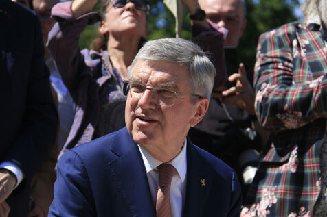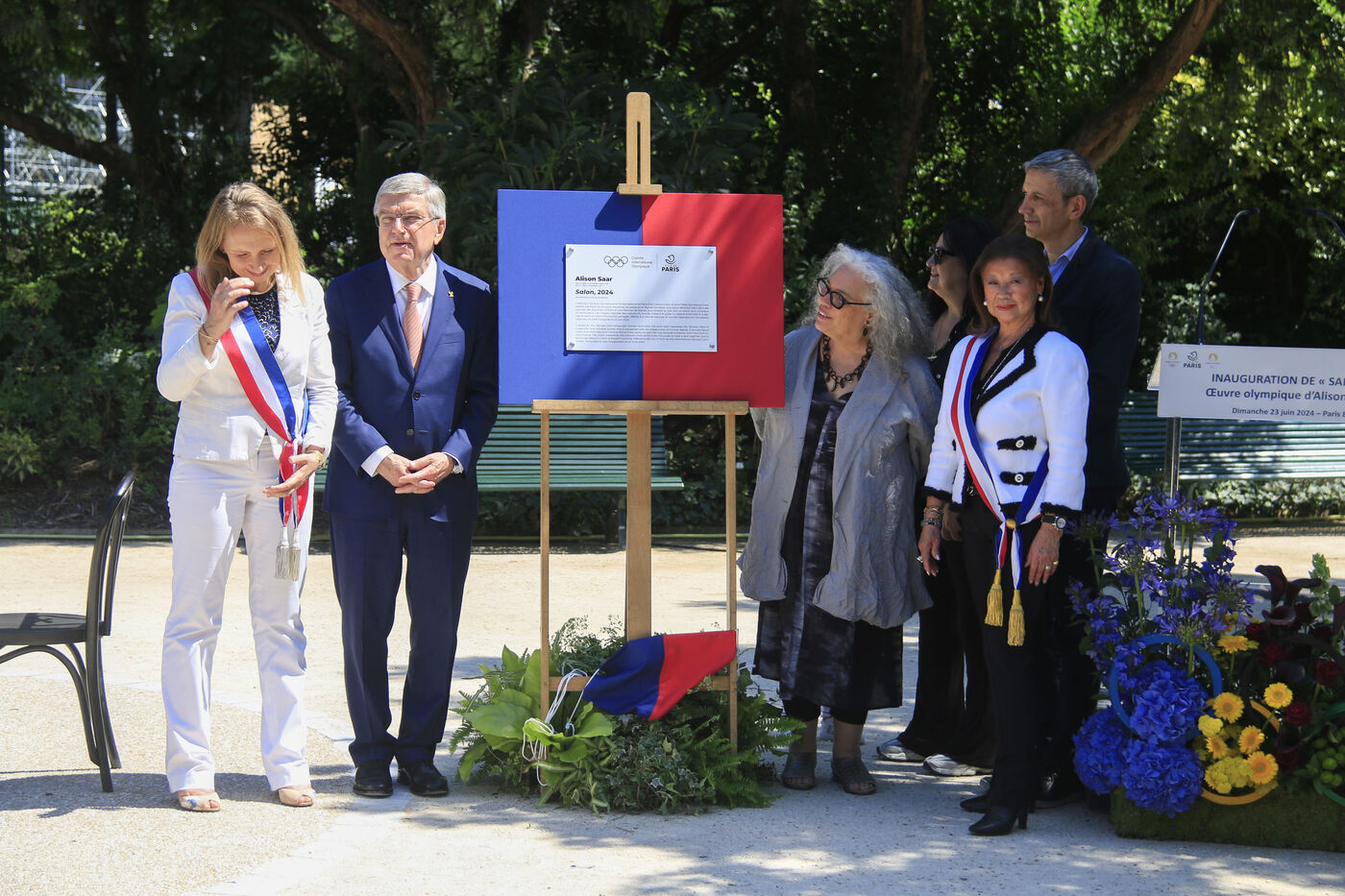 Inauguration of the Olympic work Salon d'Alison Saar at the Jardin Charles Aznavour in Paris in the presence of IOC President Thomas Bach on June 23, 2024.