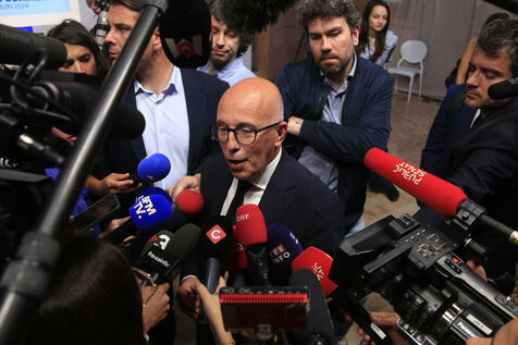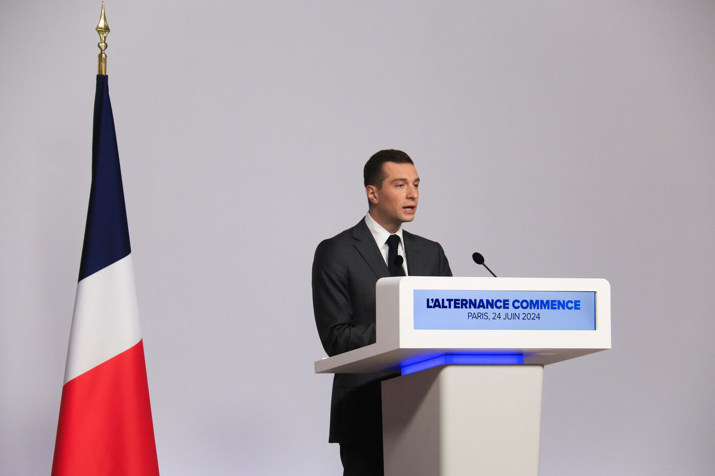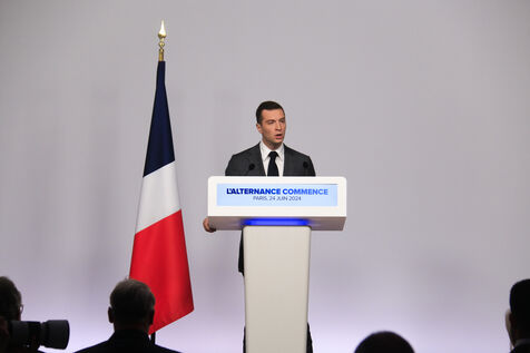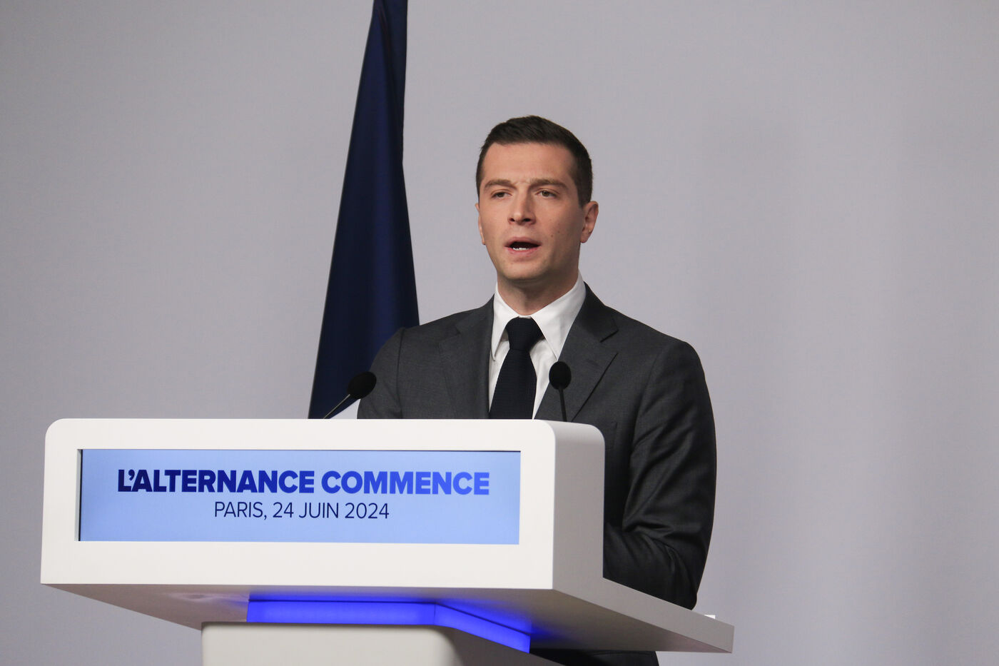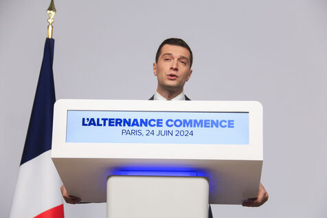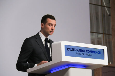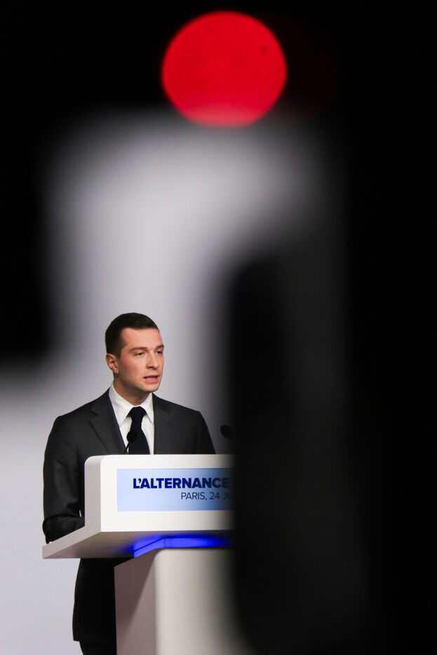 Jordan Bardella presented his program with figures in a press conference as part of the legislative elections in Paris on June 24, 2024.