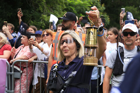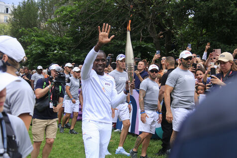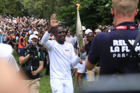 Relais de la flamme olympique au Parc des Buttes-Chaumont à Paris le 15 juillet 2024.
