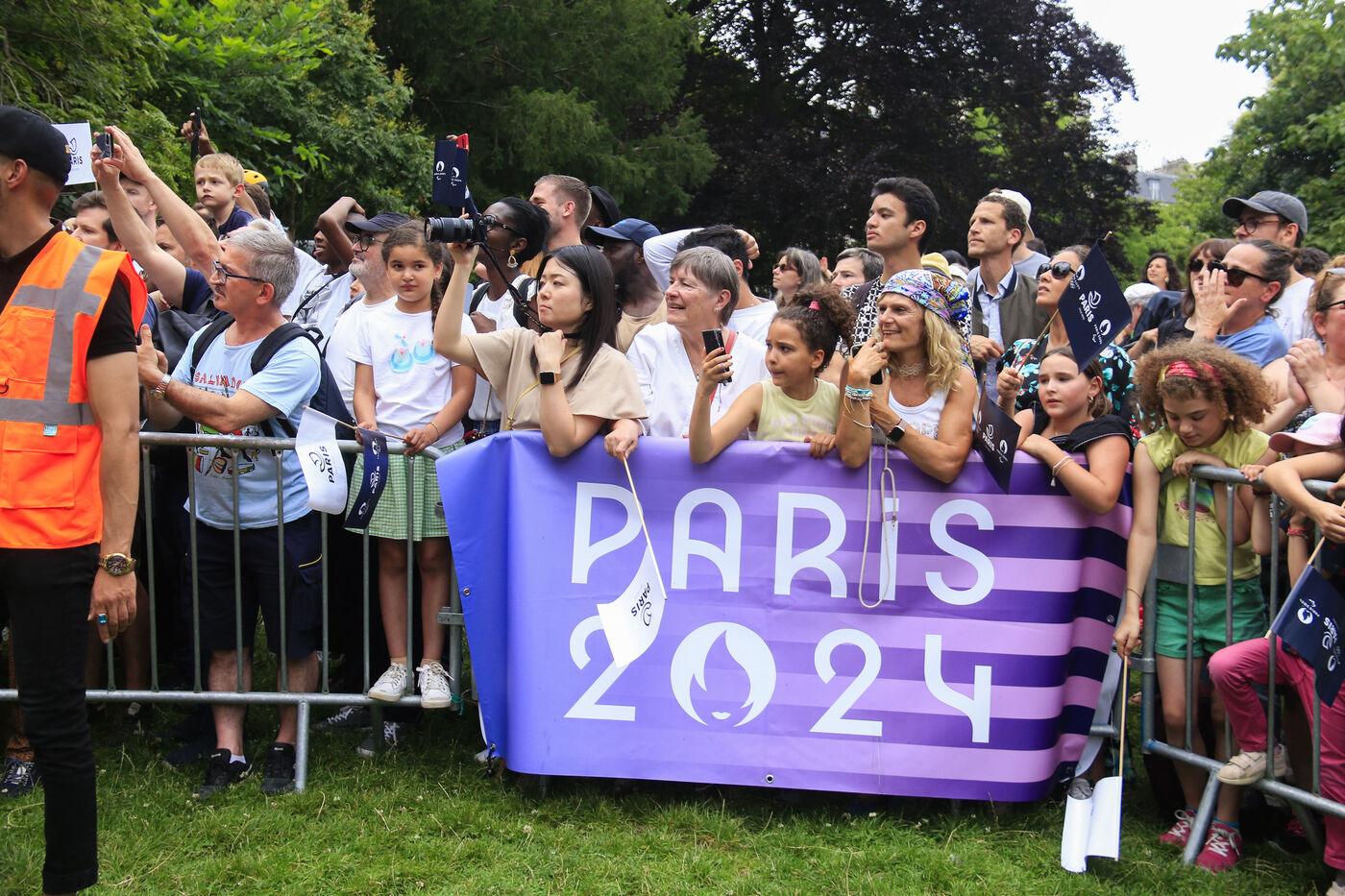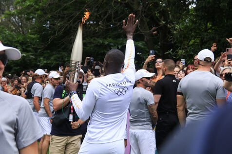 Olympic torch relay at Parc des Buttes-Chaumont in Paris on July 15, 2024.