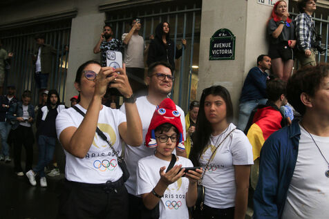 Public during the opening ceremony of the Olympic Games in Paris on July 26, 2024.