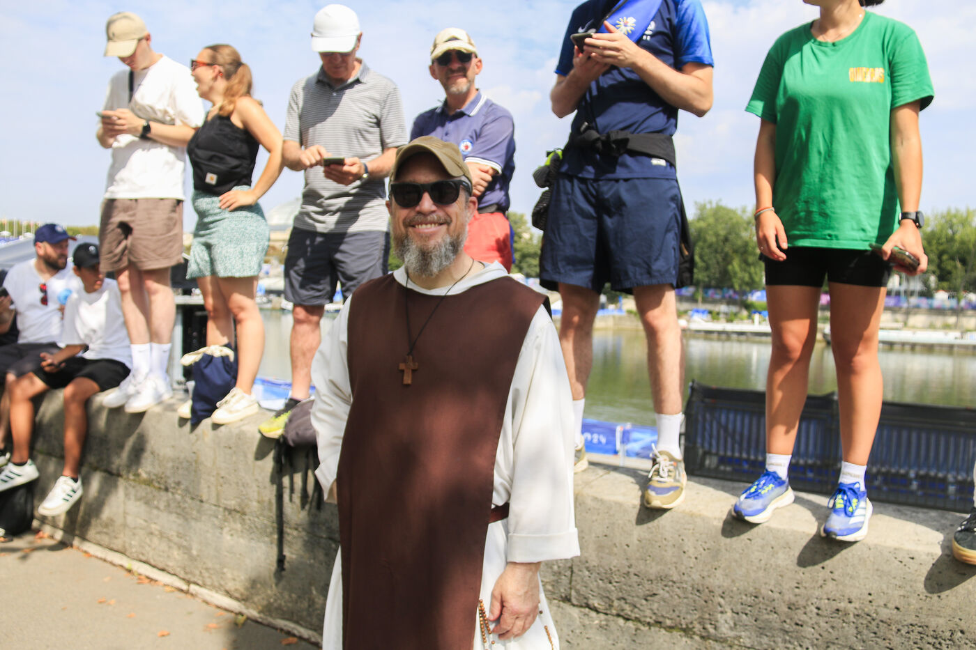 Supporter lors du Triathlon masculin au Quai d'Orsay pour les Jeux Olympiques à Paris le 31 juillet 2024.