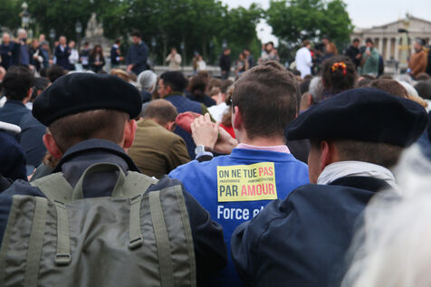 Vigil of mobilization against assisted dying called by the collective Les Éveilleurs in Paris on May 27, 2025.
