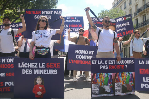 Pride March 2025 in Paris, where the Eros Collective gathered on the sidelines of the event on June 28, 2025.