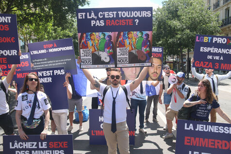 Marche des Fiertés 2025 à Paris, où le Collectif Eros s'y était rassemblé en marge de l'évènement le 28 juin 2025.