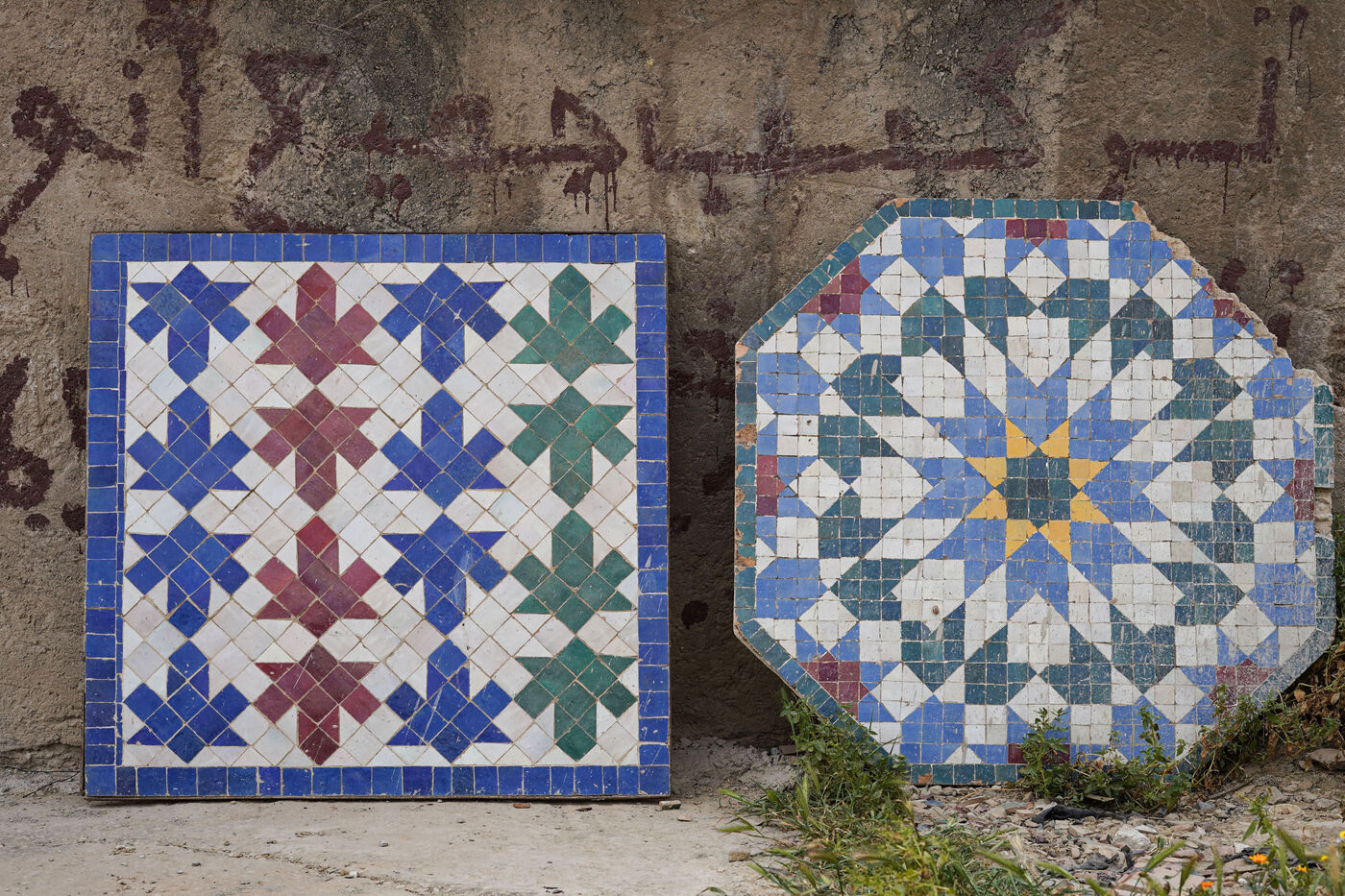 In a workshop in Meknes, several craftsmen work together, each with their own special skills and expertise, to create these meticulously crafted ornamental tiles. Each craftsman, with precise gestures and meticulous attention to detail, contributes to an essential stage in the process.