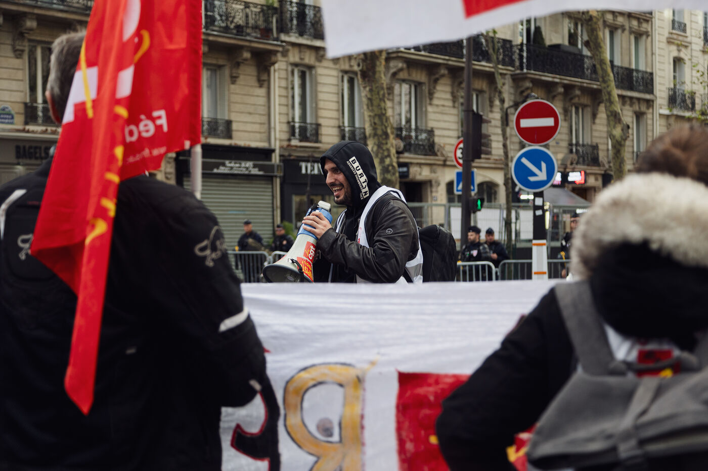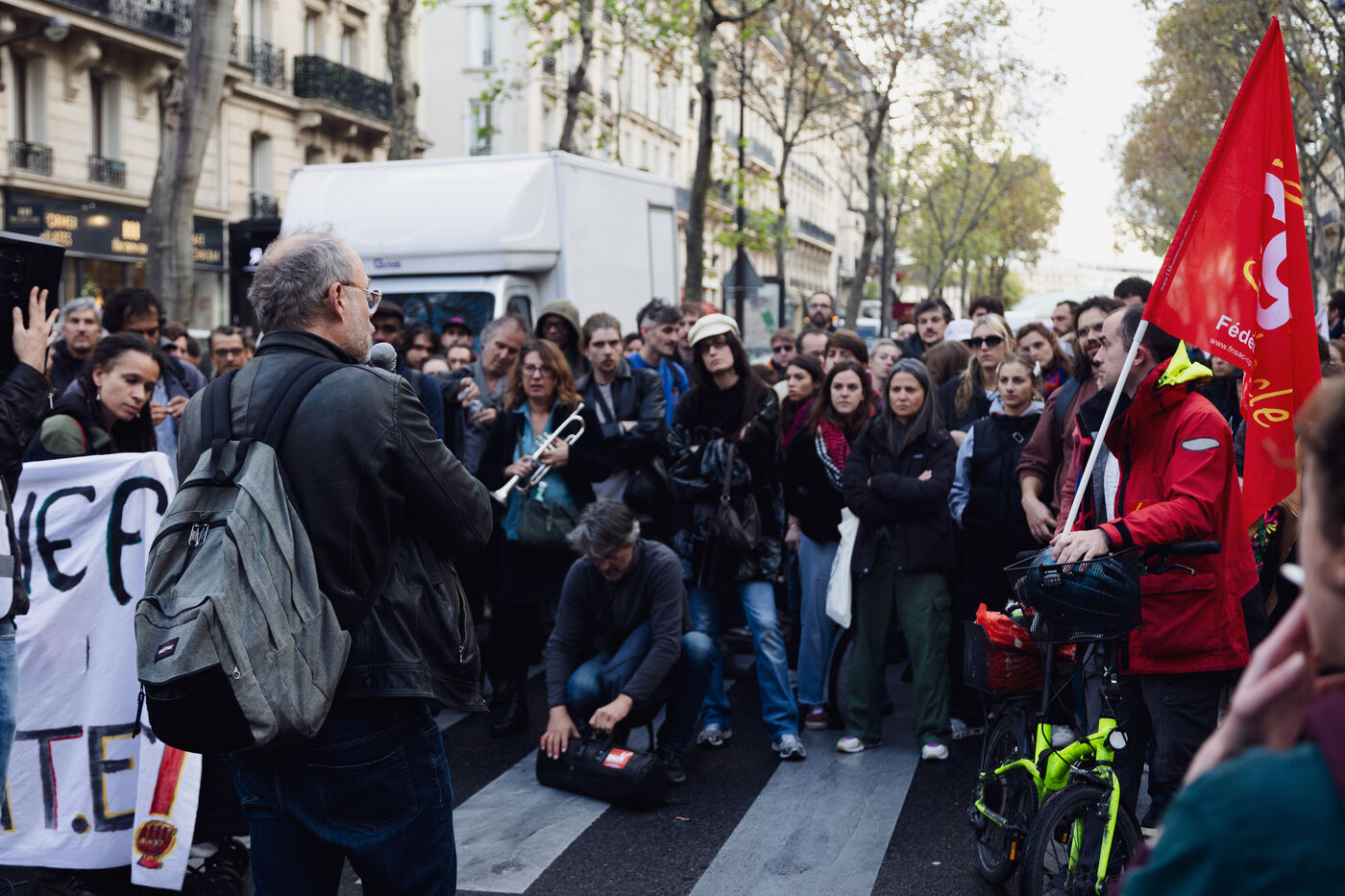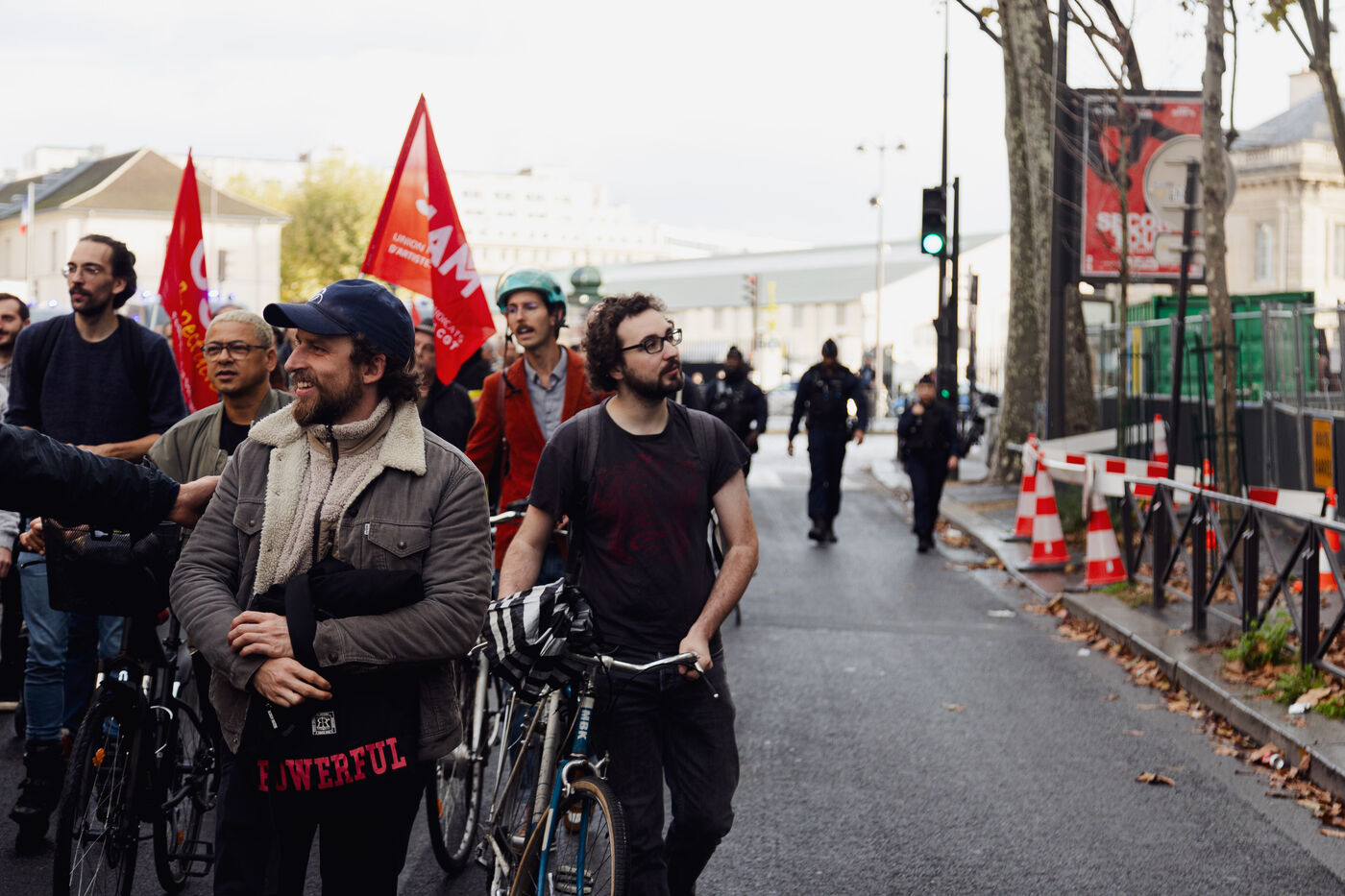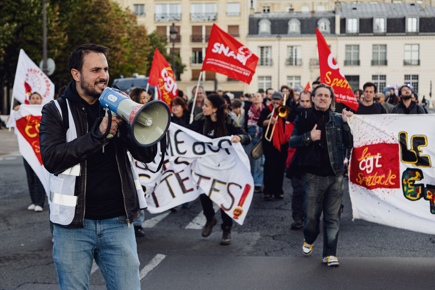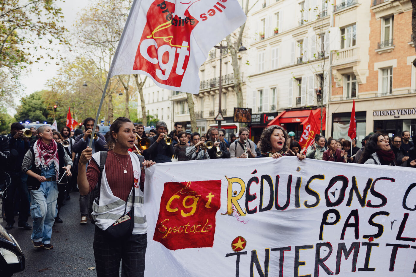 Manifestation des intermittents du spectacle contre la casse de l'assurance chômage durant les négociations avec le MEDEF et le patronat qui demande 15% d'économies sur les annexes 8 et 10 de l'assurance chômage.