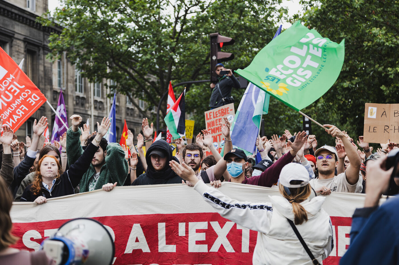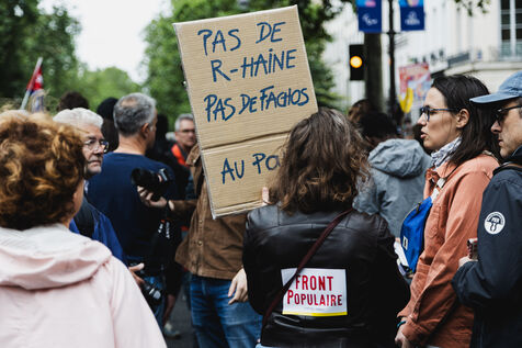 Demonstration against the far right and for a new popular front called by national trade unions between Place de la République and Place de la Nation in Paris.