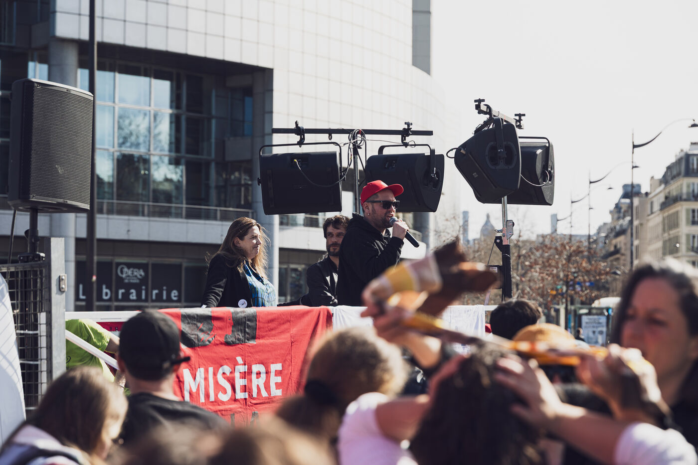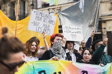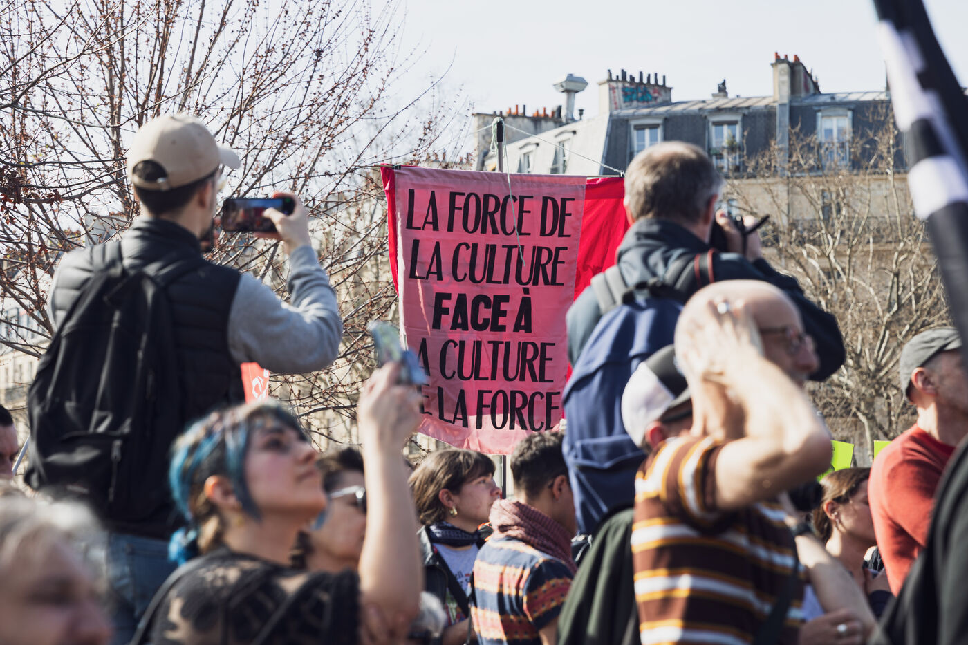 Manifestation des syndicats et collectifs du monde des arts et de la culture contre les coupes budgétaires du secteur.