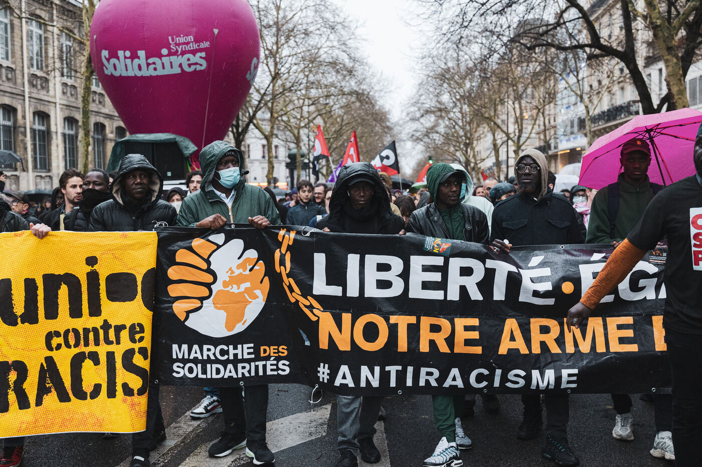 Demonstration against racism, right-wing extremism and all forms of fascism called by trade unions and anti-racist collectives between Place de la République and Place de la Nation in Paris