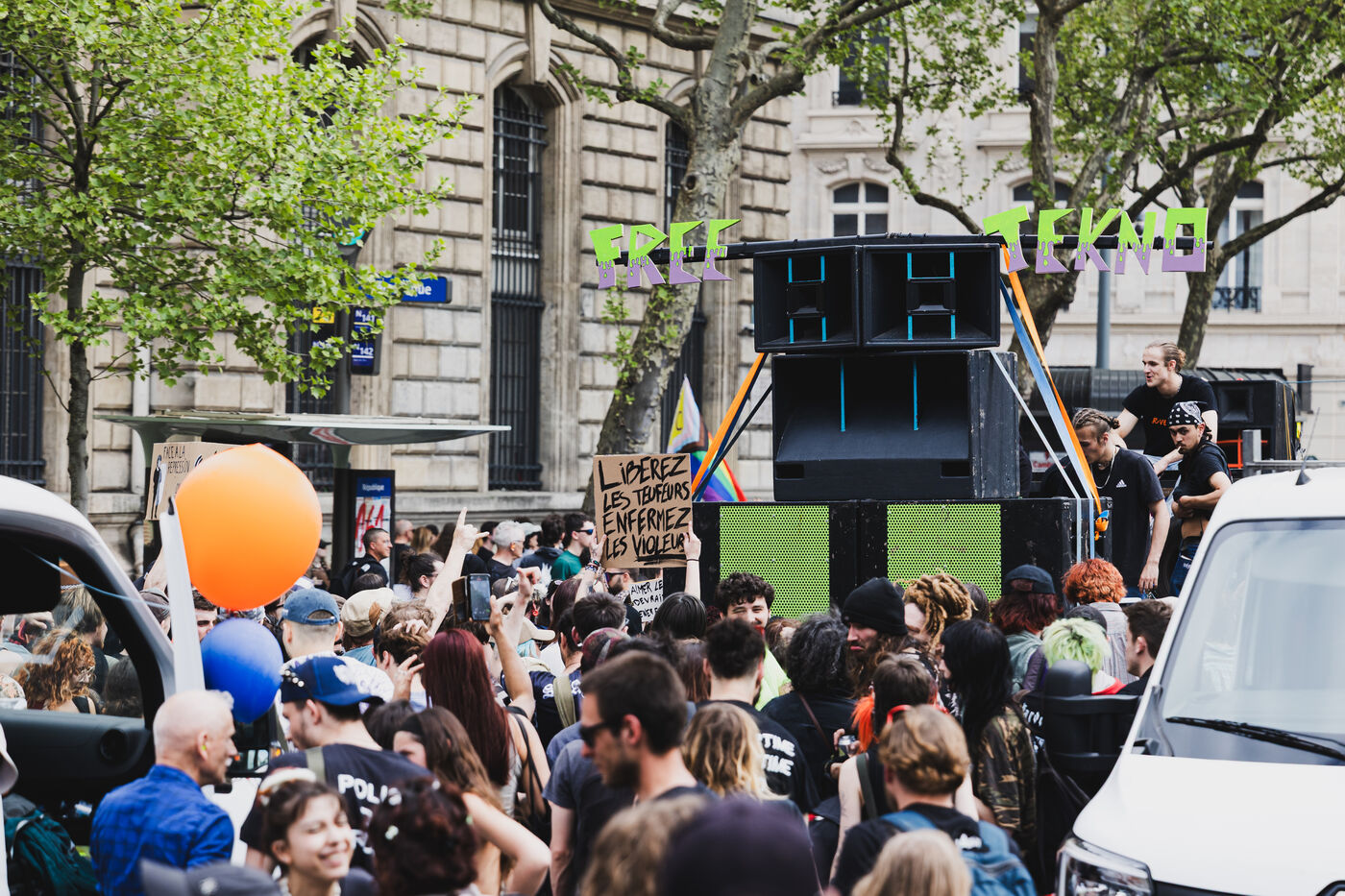 Demonstration by techno collectives and ravers against repression and for a free party.