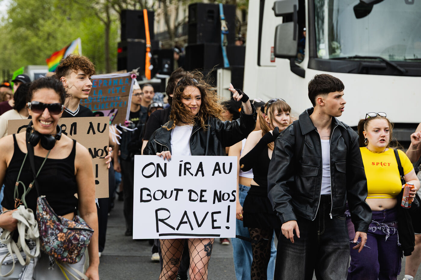 Manifestation de collectifs techno et ravers contre la répression et pour une fête libre.