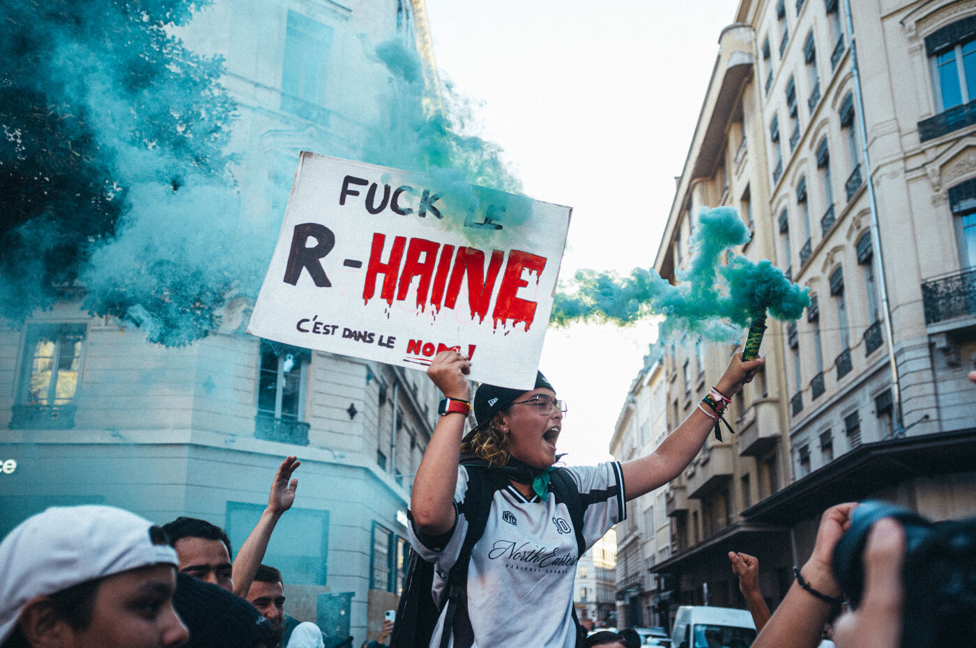 Soiree qui suit les resultats du deuxieme tour des elections legislatives et la victoire en nombre de siege du Nouveau Front Populaire (NFP), a Lyon en France le 7 juillet 2024.