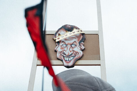 Rassemblement à l'appel de plusieurs organisations de gauche et du NFP (Nouveau Front Populaire) suite à la nomination comme Premier ministre de Michel BARNIER (LR Les Républicains) par Emmanuel MACRON sur la place Jaude a Clermont-Ferrand dans le département de l'Auvergne en France le 7 septembre 2024.
