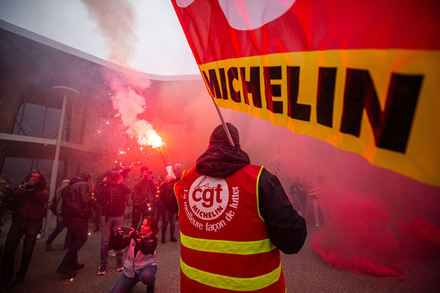 Manifestation contre la fermeture des sites de Michelin à Vannes et Cholet à Clermont-Ferrand.