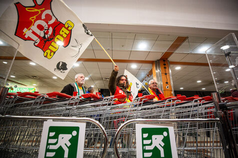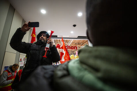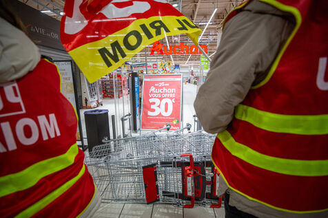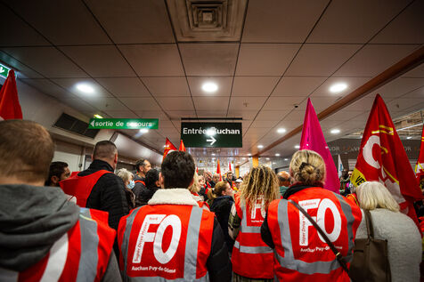 Inter-union rally at the Auchan Nord store in Clermont-Ferrand, following the announcement of the store's closure in six months' time.