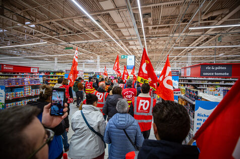 Rassemblement intersyndical à l'Auchan Nord de Clermont-Ferrand après l'annonce de la fermeture de ce magasin dans six mois.
